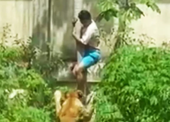 Rapaz escalou muro e usou árvore para entrar em recinto proibido; leoa o puxou pelo quadril – Foto reprodução…