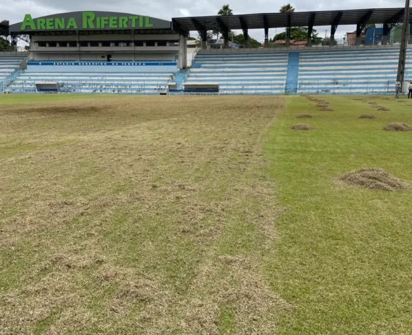 Reforma do gramado no Estádio Genervino da Fonseca, em Catalão
