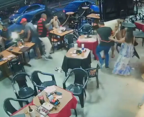 Vídeos de câmeras de segurança de um bar que fica no Jardim Belo Horizonte, em Aparecida de Goiânia, registraram todos os momentos da briga que culminou com um jovem de 25 anos baleado no domingo (01/01). Pelas imagens, dá para ver que o atirador perseguiu a vítima para tentar executá-lo. A confusão aconteceu logo após a partida entre Flamengo e Corinthians, que estava sendo transmitida nas TVs do estabelecimento. (Veja o vídeo no final da matéria)